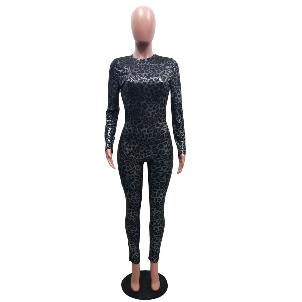 Fashion Women Clothes Jumpsuits O-neck Full Sleeve Leopard Print Streetwear Hollow Out Rompers Sexy