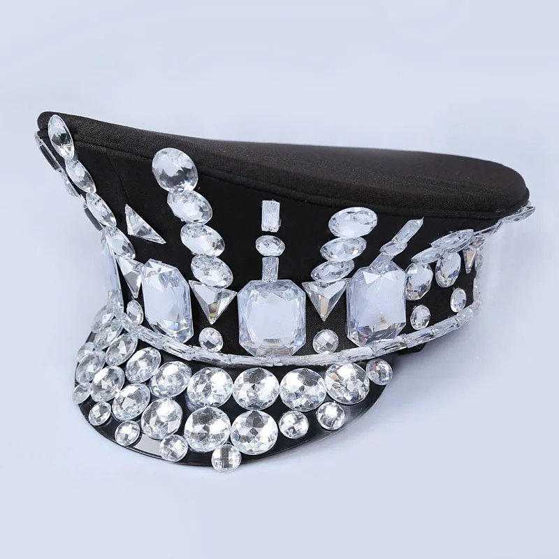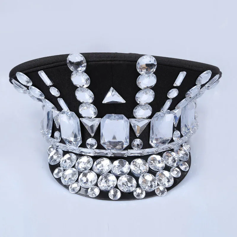 2017 Direct Selling Winter Military Hats Gorras New Dance Night Bar Ds Costume Accessories Rhinesto