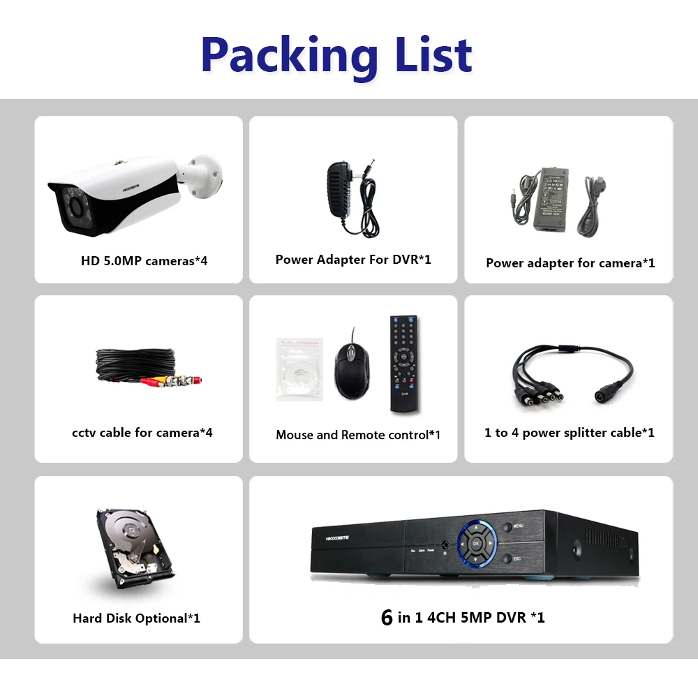 CCTV Full HD DVR 4 PCS 5MP Outdoor Street Camera Surveillance Security Kits 6 PCS Big IR LED Array