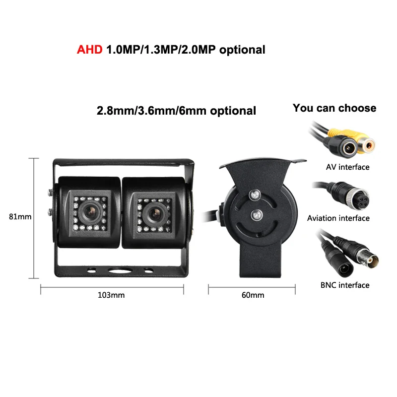 AHD 1.0MP Dual Cam IR Night Vision Waterproof Rear View Parking Backup Reversing Camera for Vehicle