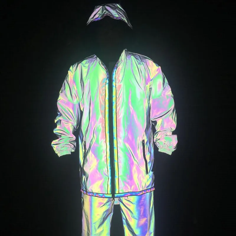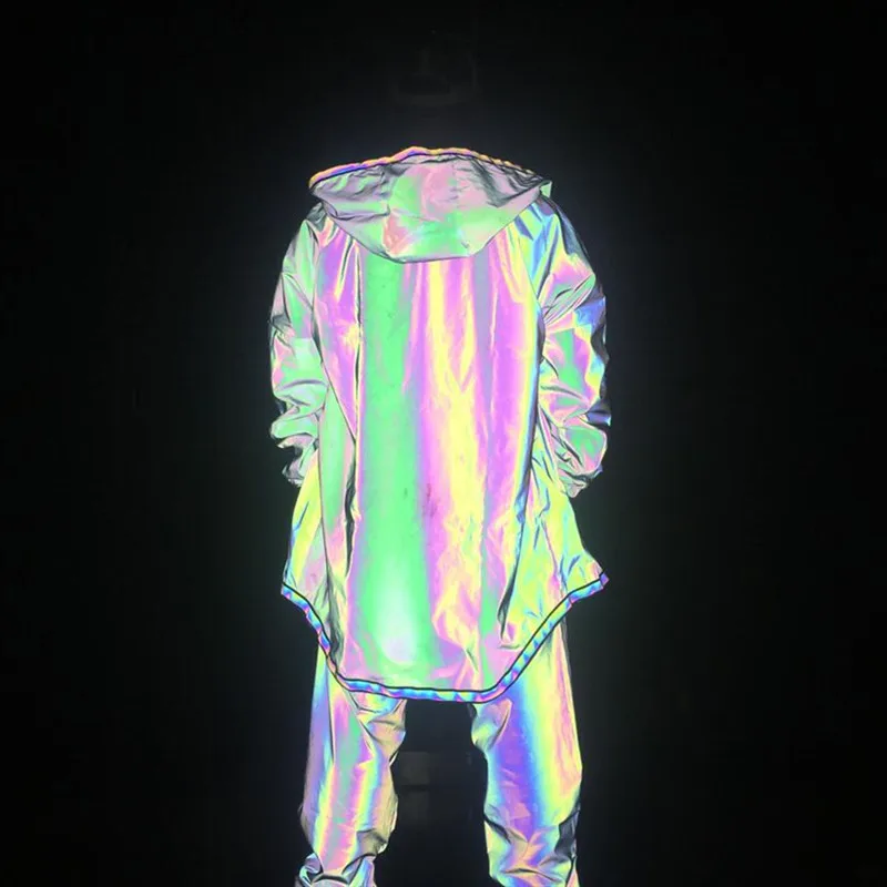 REVIEW TOP SELLER 2019 Men Autumn night Colorful full reflective Hooded Jacket Long section Curved hem hip hop Loose