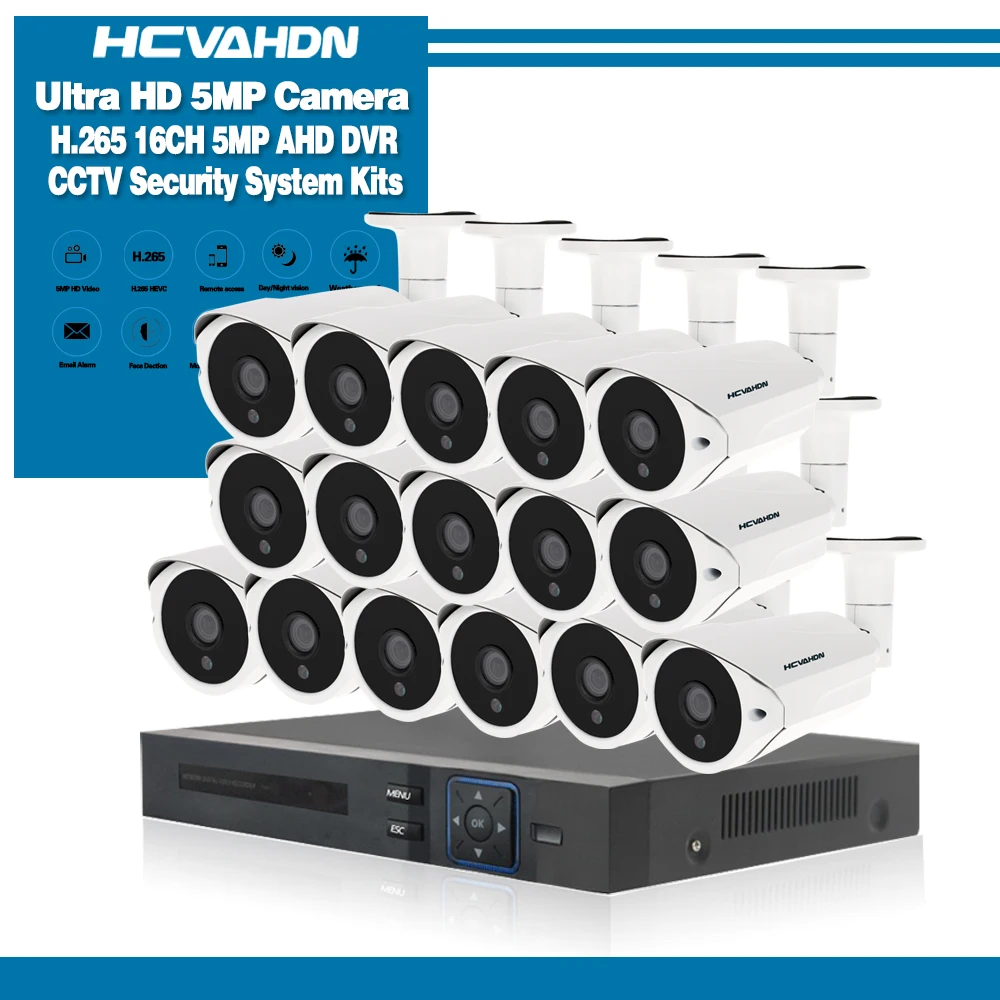 H.265 5MP 16CH Video Surveillance System with 16pcs 5.0MP Night Vision Outdoor/Indoor Home Security